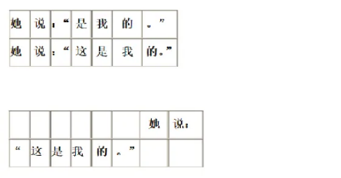 2、引號“”和括號()的前半放在一行開頭(與字同格不單占),但不能放在上一行的末尾;它們的后半放在一行末尾(與字同格不單占),但不能放在下一行開頭。