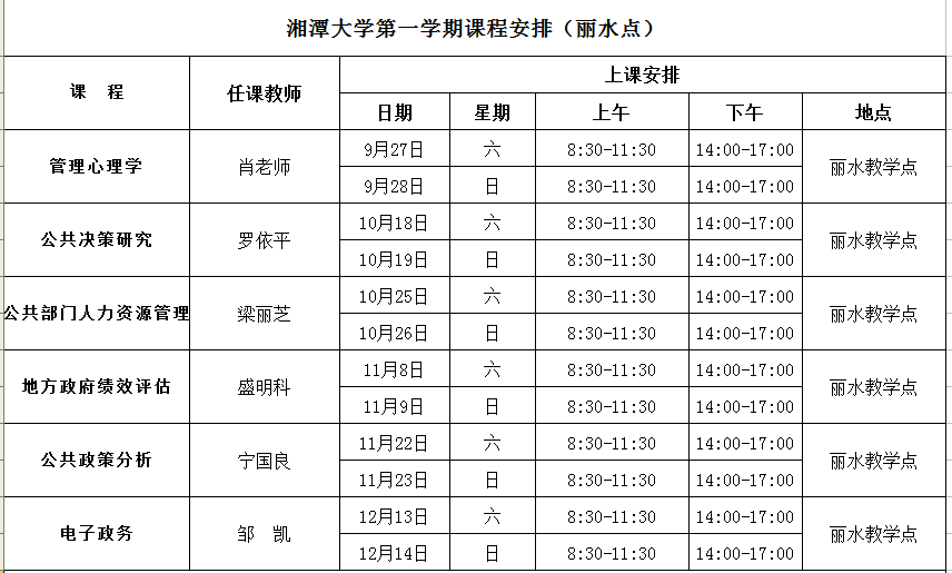湘潭大學(xué)MPA課程安排